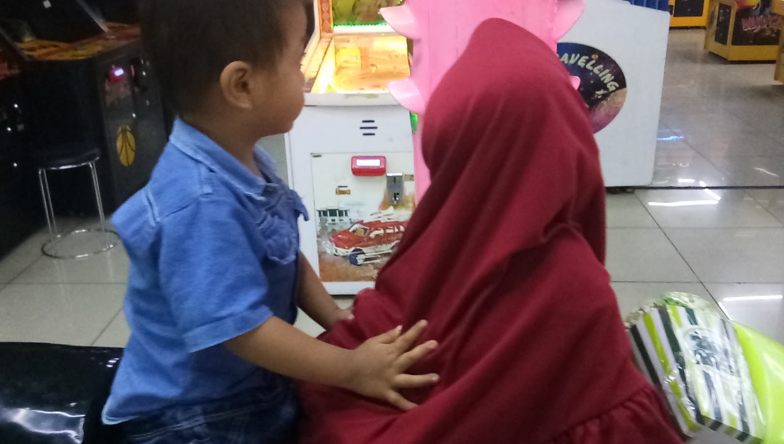 Setelah sholat Isya kami pulang. Tapi setelah sampai di depan M TOS, anak-anak minta untuk menikmati wahana bermain yang ada disini. Karena malam ini saya juga tidak memiliki agenda. Akhirnya kami singgah sambil, menikmati malam ahad.👍