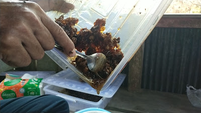 Ternyata untuk mengambil madunya, tidak dengan cara diperat. Tapi cukup menggunakan sendok, setelah itu langsung disaring.
